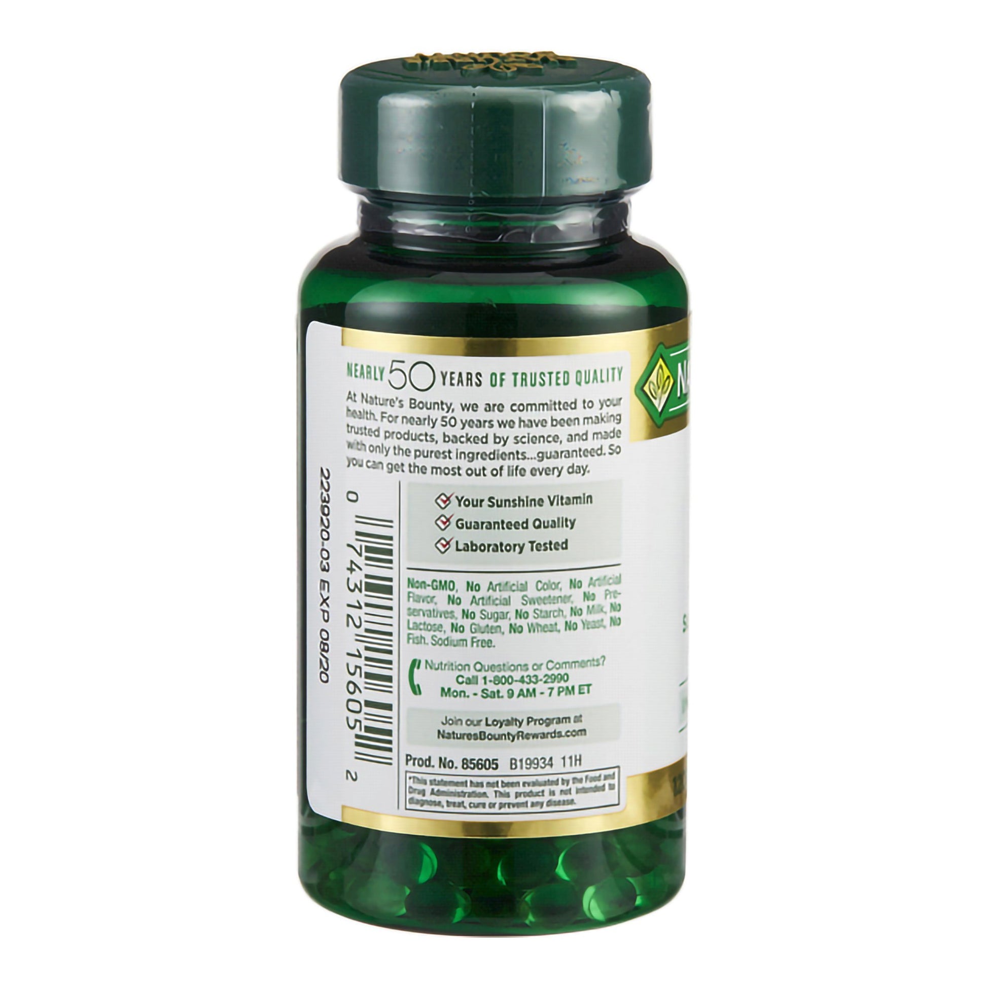 Vitamin Supplement Nature's Bounty® Vitamin D 1,000 IU Strength Softgel 100 per Bottle